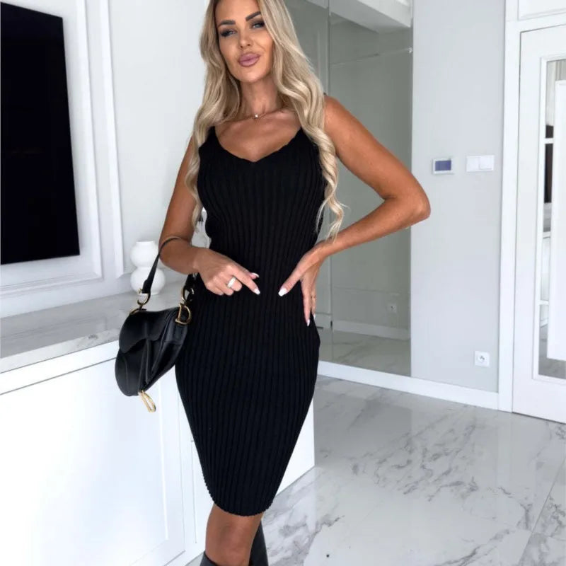 Vestido suéter elegante con escote en V